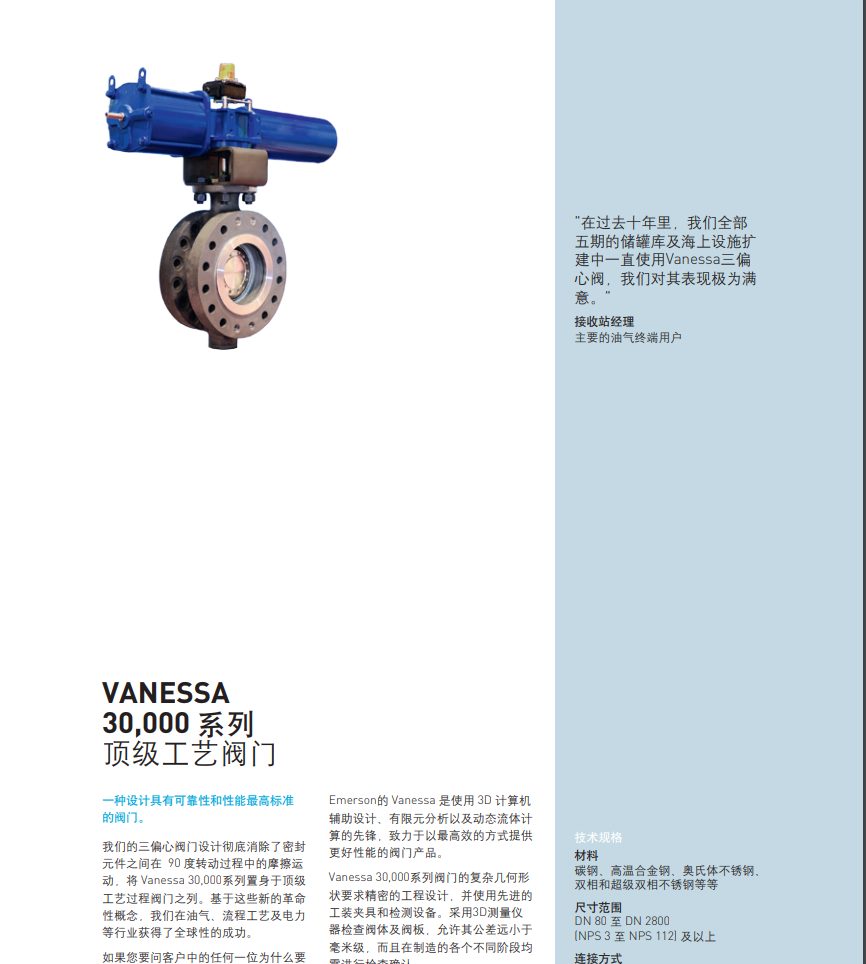 VANESSA 30,000系列 顶级工艺阀门 可靠性 性能最高标准的阀门 使用碳钢、高温合金钢、奥氏体不锈钢等等。